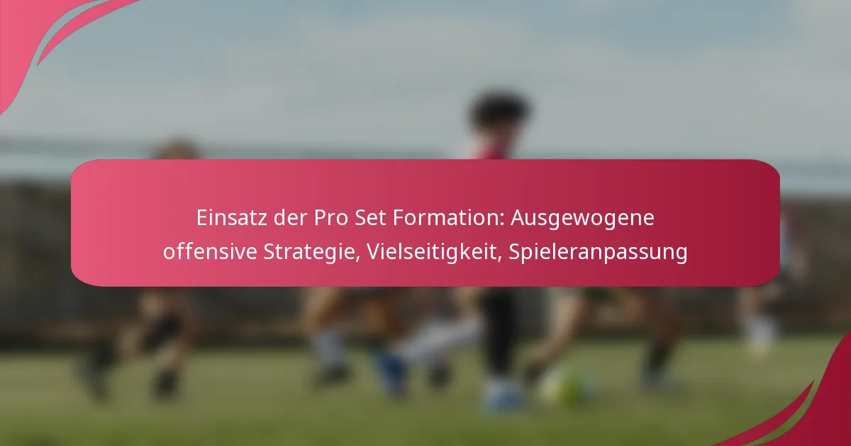 Die Pro Set-Formation ist eine ausgewogene offensive Strategie, die Vielseitigkeit und Spieleranpassung betont. Sie ermöglicht es den Teams, sich an verschiedene defensive Schemata anzupassen und bietet mehrere Optionen für sowohl Pass- als auch Laufspielzüge.