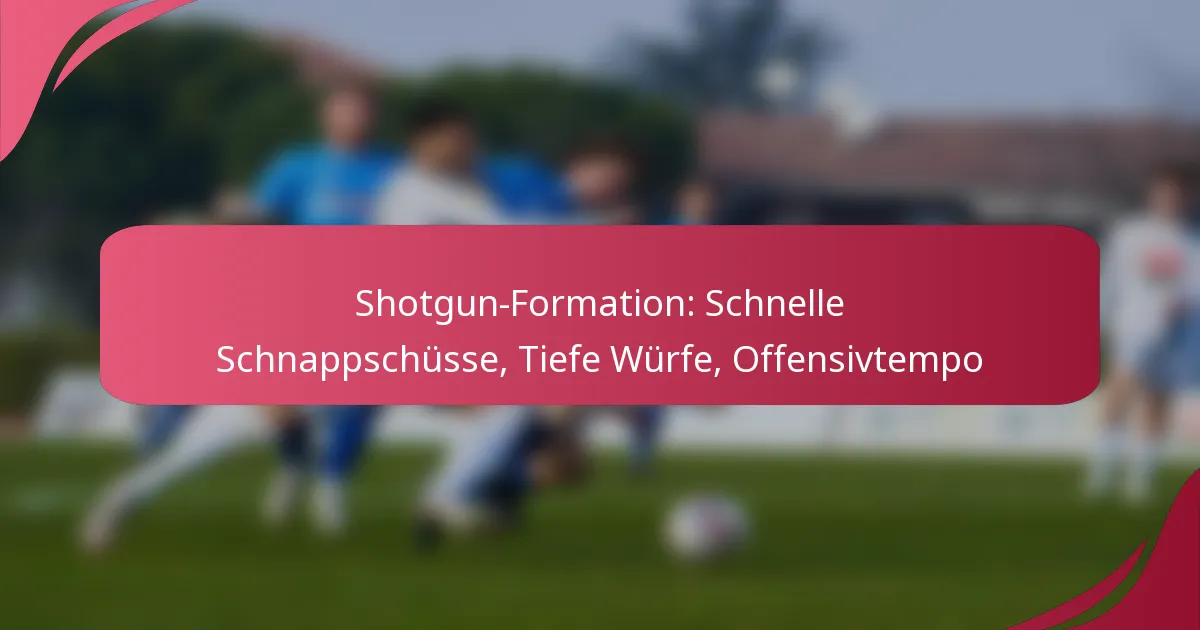 Die Shotgun-Formation ist eine offensive Ausrichtung im American Football, bei der der Quarterback mehrere Yards hinter dem Center steht, was schnelle Pässe und tiefe Würfe ermöglicht. Dieses Setup verbessert das offensive Tempo und bietet dem Quarterback eine bessere Sicht und Reaktionszeit gegenüber defensiven Druck.